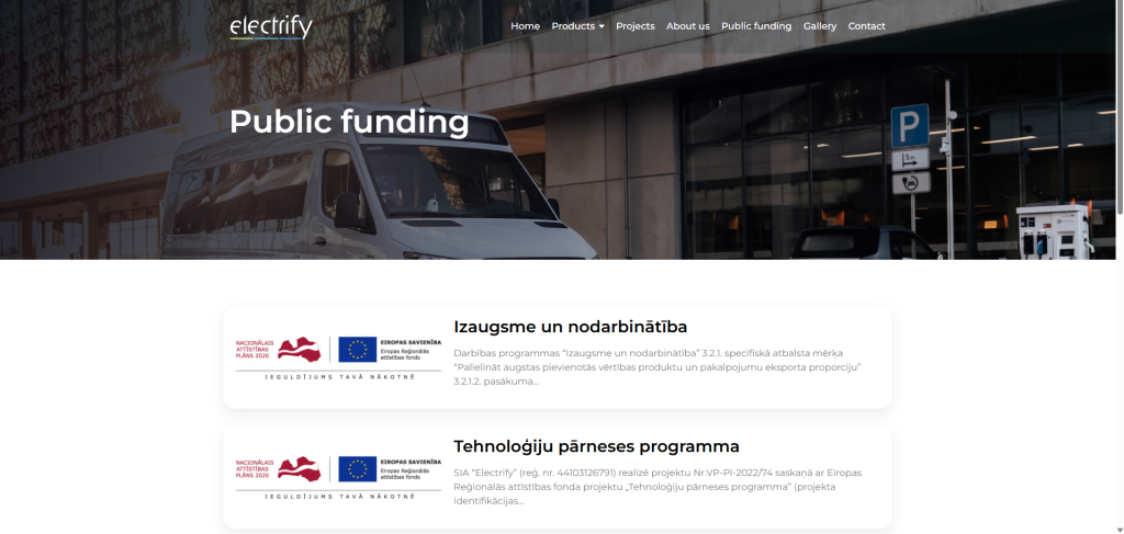 Mājaslapa kalpo kā reprezentatīva platforma Electrify zīmolam un ļauj ērti iepazīties ar uzņēmuma produktiem, projektiem un publiskā finansējuma aktivitātēm. Tā nodrošina profesionālu uzņēmuma tēla prezentāciju starptautiskā līmenī un vienlaikus ļauj administrācijai ērti pārvaldīt saturu ikdienā.